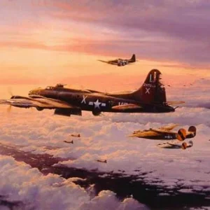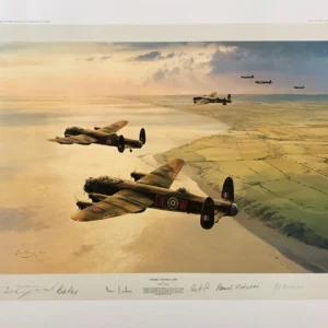 One of Robert Taylor’s early classics – personally signed by the highest scoring RAF Ace of WWII Johnnie Johnson and the legendary Ace Bob Stanford-Tuck – in a scene that imagines these two highly colourful RAF Aces as they might have been ‘flying home together’ approaching Beachy Head with the iconic lighthouse at the foot of the cliffs.