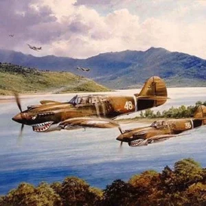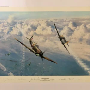 One of Robert Taylor’s early classics – personally signed by the highest scoring RAF Ace of WWII Johnnie Johnson and the legendary Ace Bob Stanford-Tuck – in a scene that imagines these two highly colourful RAF Aces as they might have been ‘flying home together’ approaching Beachy Head with the iconic lighthouse at the foot of the cliffs.